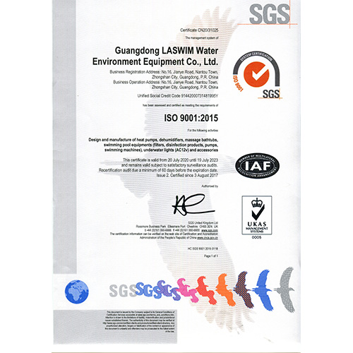 LASWIM(威浪仕)在行業(yè)內率先通過了ISO9001國際質量管理體系認證,多項產品獲得了CE、TUV、KETI認證、高新技術產品認證和產品專利證書;同時LASWIM(威浪仕)積極推動行業(yè)的規(guī)范與發(fā)展,獲選參與制訂了一系列中國水環(huán)境行業(yè)標準。