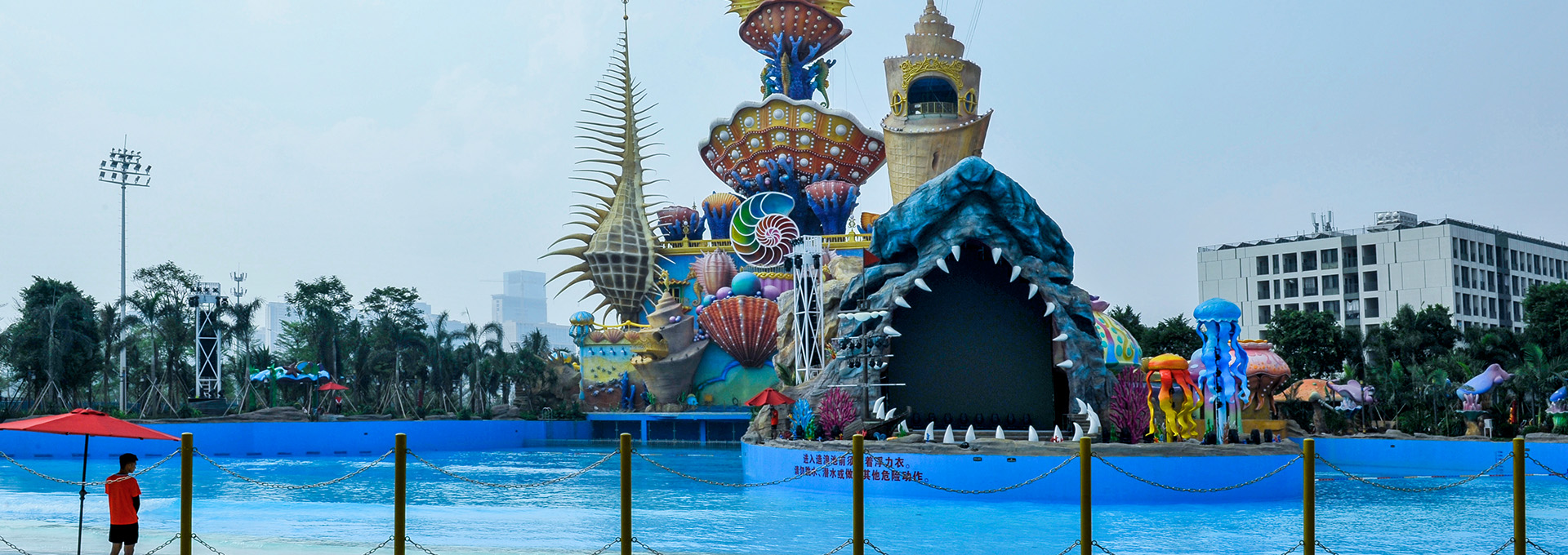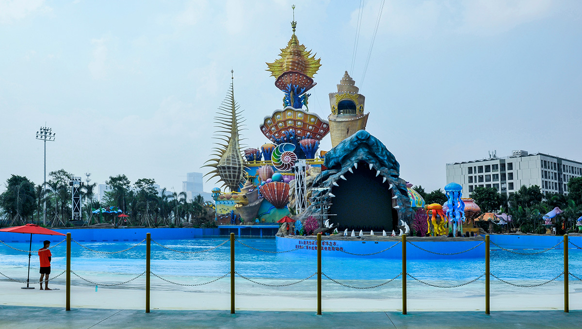 項目包含萬人造浪池、漂流河、兒童滑道、潛水池、觸摸池、華南最大超級水寨、彩虹滑道、跌浪+大回環(huán)滑道、沖浪池、大喇叭組合、黑洞+大碗+管狀組合滑道、超長水上過山車、粉色沙灘SPA理療池等近20項亞洲先進(jìn)的水上游樂項目。