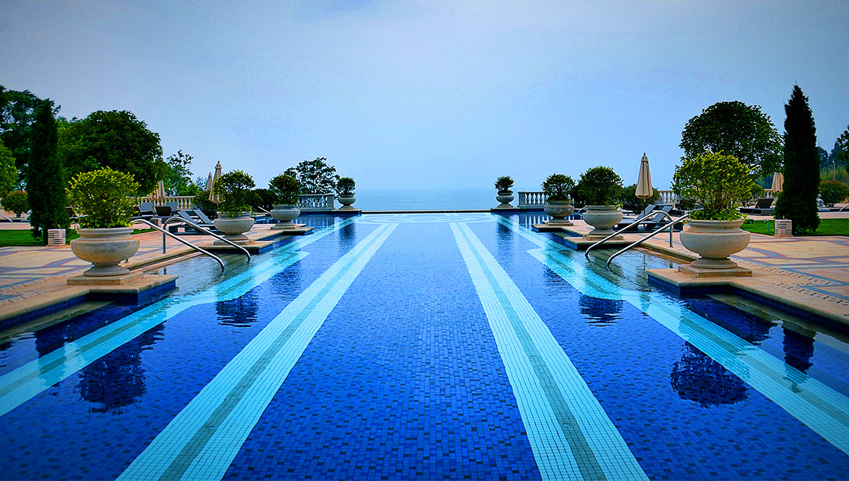 項(xiàng)目總建筑面積約為10 萬(wàn)平方米,共計(jì)七層。酒店擁有面積高達(dá)200 平方米的室內(nèi)恒溫泳池和630 平方米的無(wú)邊際泳池。酒店泳池水處理系統(tǒng)由我司于2015年完成打造。酒店室內(nèi)恒溫泳池采用了逆流式循環(huán)方式,而室外無(wú)邊際泳池為順流式循環(huán)方式,泳池循環(huán)周期均設(shè)計(jì)為6 小時(shí),水體采用了分流量全程式臭氧消毒,并配置了長(zhǎng)效氯消毒系統(tǒng)。為確保泳池水質(zhì)絕對(duì)的安全性,泳池監(jiān)測(cè)系統(tǒng)使用了自動(dòng)水質(zhì)監(jiān)測(cè)儀,時(shí)刻監(jiān)測(cè)水質(zhì)安全,給泳客們提供一個(gè)健康、舒適的水環(huán)境。