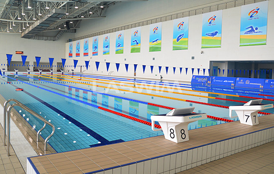 ①室內(nèi)標(biāo)準(zhǔn)比賽池:長50米×寬25米×深3米,10泳道,逆流式循環(huán)+石英砂過濾+水質(zhì)監(jiān)測+氯消毒+臭氧消毒+恒溫加熱;