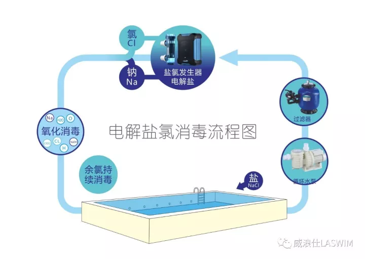 ??在消毒方面,由于采用的是LASWIM(威浪仕)鹽氯發(fā)生器,所以它能通過(guò)電解鹽的消毒方式,使用食鹽為原料,在線生成活性氯,與其他種類(lèi)的氯消毒相比,其費(fèi)用可大大降低,具有無(wú)法比擬的經(jīng)濟(jì)性;其次是它的先進(jìn)性,它是把食鹽直接溶解于池水里,含液量與人的體液相平衡,對(duì)游泳者來(lái)說(shuō)更適應(yīng)、更健康。